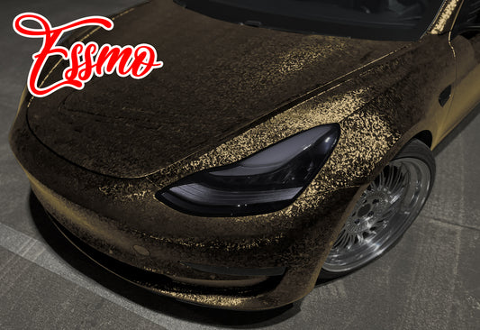 PET Damascus Forged Satin Golden Yellow Vinyl Wrap