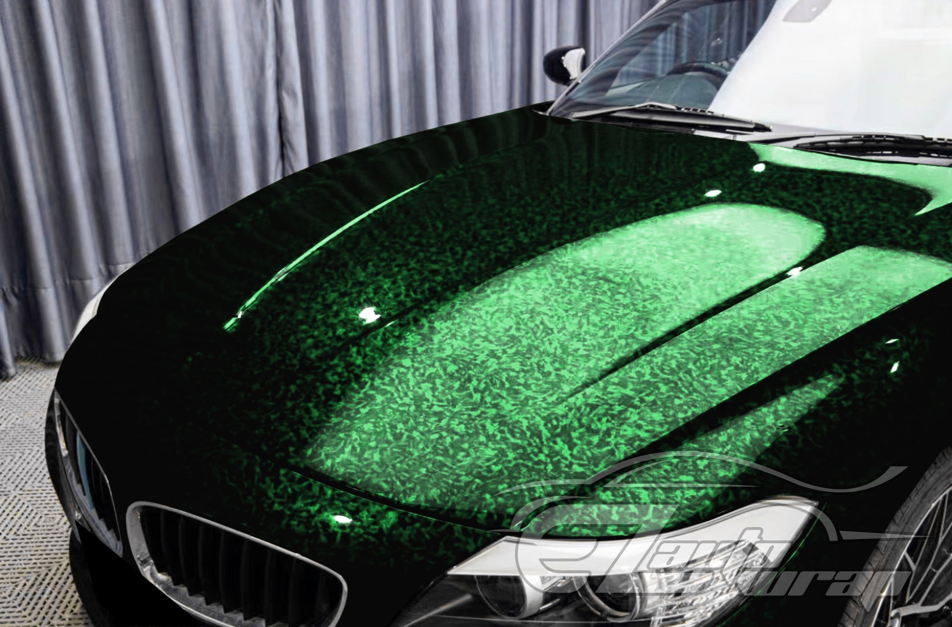 24K Chopped Forged Carbon Fiber Gloss Venom Green Vinyl Wrap